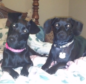 black dogs spending time together